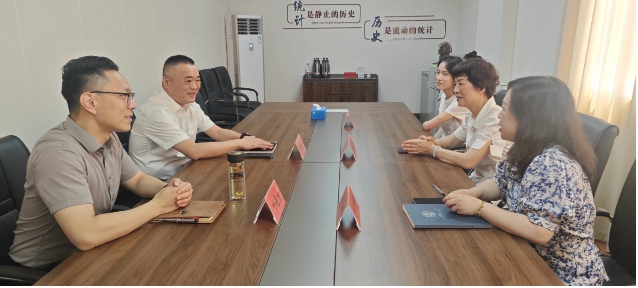 六月,骄阳似火,一场关于感恩、传承与展望的暖心相遇正在上演。6月27日上午,东方学院校友会执行会长伏晓红、学院党总支副书记杨荧彬、学院团委书记童雅倩一行专程奔赴嘉善县统计局,走访2014届工程管理专业优秀校友叶俊杰副局长。此行不仅承载着母校对校友的深切关怀,更饱含着共话人才培养、共谋发展新篇的殷切期望。嘉善县统计局党组书记、局长芮晓荣全程陪同。