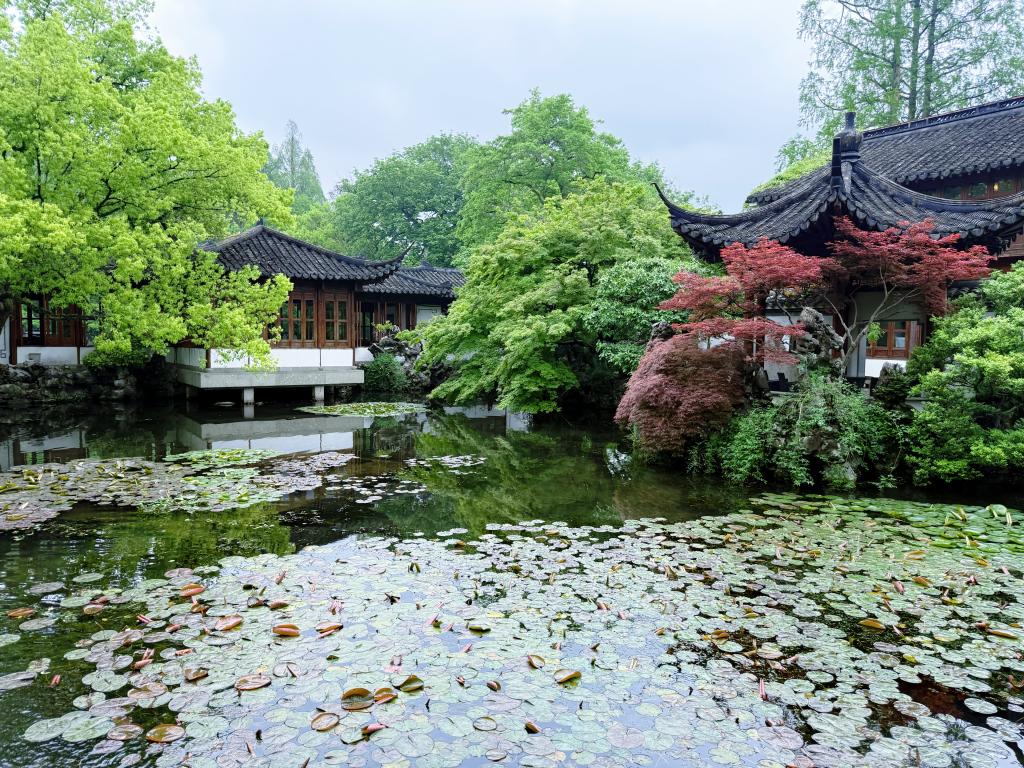 素有“西湖园林之冠”美誉的郭庄,又名汾阳别墅,是西湖畔保留清代格局的古典园林精品。步入园内,石库门照壁古朴雅致,镂空窗格独具匠心,尽显江南诗韵;静必居青石板铺地,金莲池水潺潺流淌,“一镜天开”景区临湖而建,南北双池相映,静动相宜,尽显造园匠心。教职工们漫步曲廊,赏藤本月季缀窗、听春风拂过亭台,清新草木香与淡淡花香交织,洗去一身疲惫。随后众人移步临湖敞轩,凭栏远眺,苏堤烟柳、保俶倩影尽收眼底,大家或围坐品茗细酌春日龙井,闲谈工作日常与生活趣事;或驻足赏景,在移步换景间感受“虽由人作,宛自天开”的园林之美。闲谈中,老师们立足郭庄文旅保护实践,围绕古典园林文旅融合深入交流。工程管理专业的老师结合园林布局与建筑形制,为大家细致解读清代造园技艺与传统美学。各位老师亦借此契机,交流探讨课堂教学创新路径,共商提升教学实效的方法,让这场闲游更具专业深意与育人温度。
